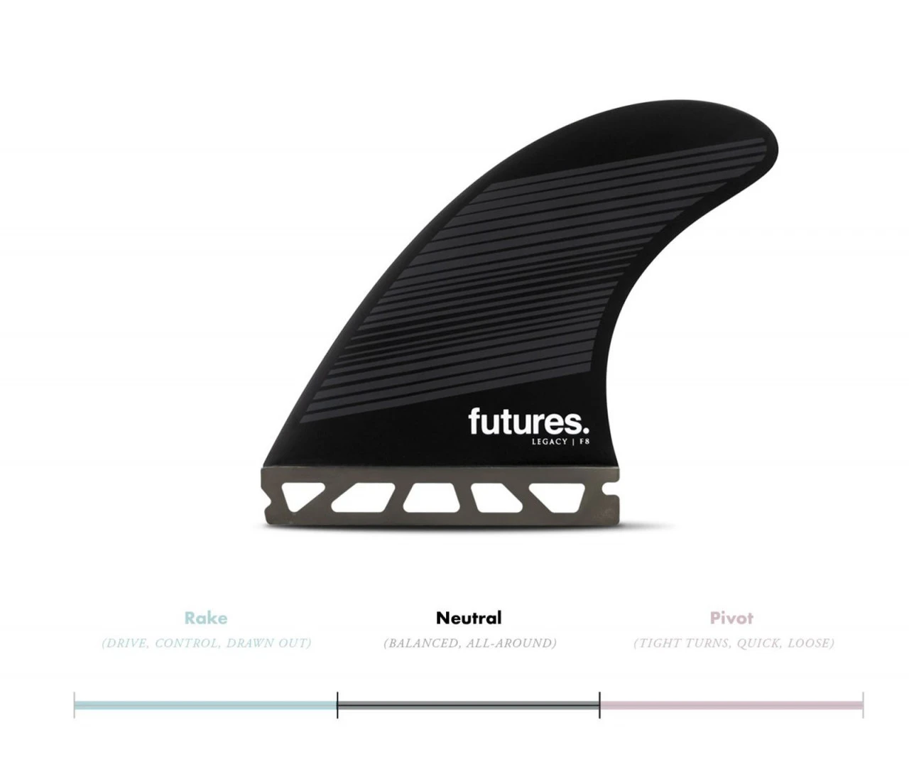 Der F8 Thruster der Legacy Series ist eine große Finne mit neutraler template und ausgewogenem Fahrgefühl für Allround-Performance.